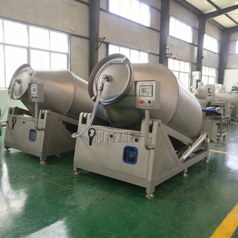 真空滾揉機(jī)的作用與優(yōu)點(diǎn): 1.滾揉腌制的環(huán)境是真空的狀態(tài),抑制微生物的生長(zhǎng)繁殖,減少了食品氧化或腐敗的因素, 同時(shí)控制低溫也是很必要地。 2.就是使產(chǎn)品在真空狀態(tài)下滾揉,會(huì)使產(chǎn)品物理體積得到彭大,松軟。使做出來(lái)的產(chǎn)品口感 更好。