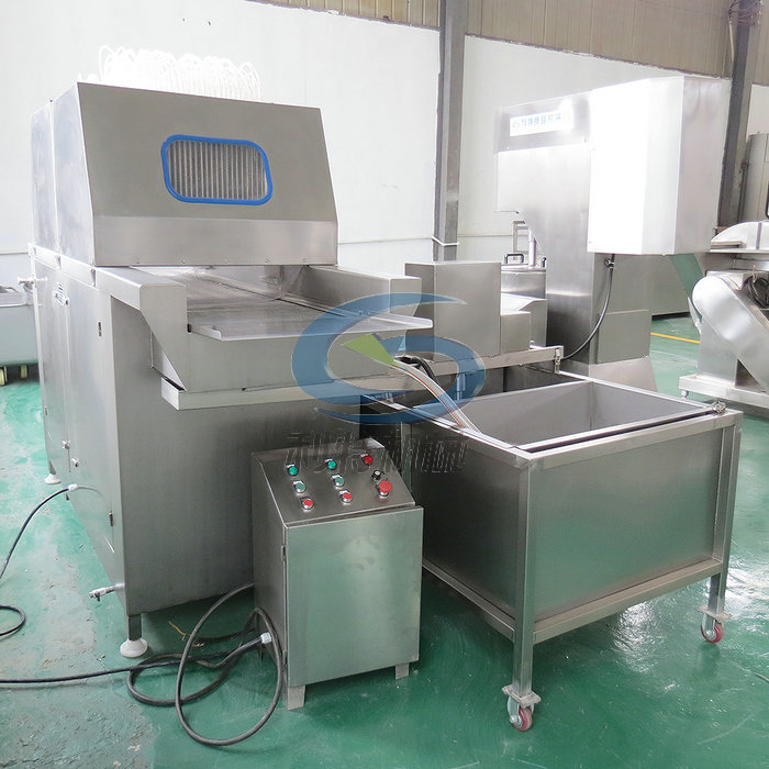 真空滾揉機(jī)是在真空狀態(tài)下,利用物理沖擊的原理,讓肉在滾筒內(nèi)上下翻動(dòng),相互撞擊、摔打,達(dá)到按摩、腌漬的作用,使肉均勻的吸收腌漬,提高肉的結(jié)著力及產(chǎn)品的彈性; 本機(jī)具有呼吸功能,讓產(chǎn)品在滾筒內(nèi)做膨脹、縮小的往復(fù)運(yùn)動(dòng),改善了肉組織的