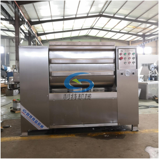 牛肉干真空滾揉機(jī)是在真空狀態(tài)下,利用物理沖擊原理讓肉在滾筒內(nèi)上下翻動(dòng)、相互撞擊、摔打,從而產(chǎn)生均勻分布的按摩、腌漬入味作用。可以是肉均勻的吸收腌漬,提高肉的結(jié)著力及產(chǎn)品彈性。當(dāng)已經(jīng)注射機(jī)嫰化的肉塊進(jìn)入本機(jī)后,經(jīng)設(shè)備筒體慢速柔和的翻滾,使肉塊